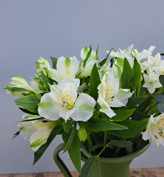 The Bouquet of the Week for the last week of November will be beautiful White Cornish grown Alstroemeria and Cornish Scented Narcissus.