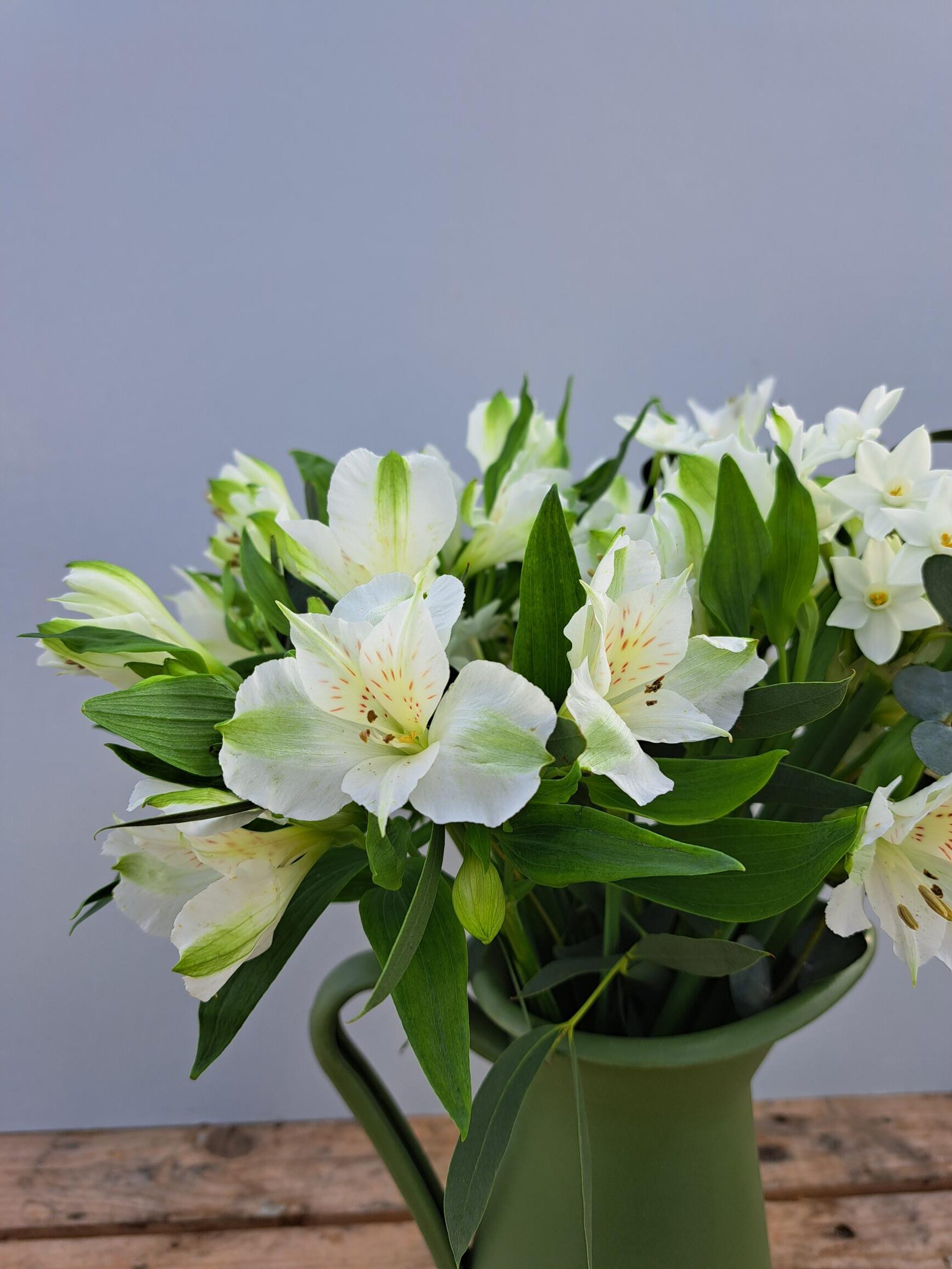 The Bouquet of the Week for the last week of November will be beautiful White Cornish grown Alstroemeria and Cornish Scented Narcissus.