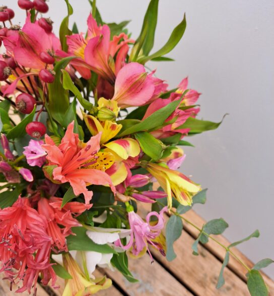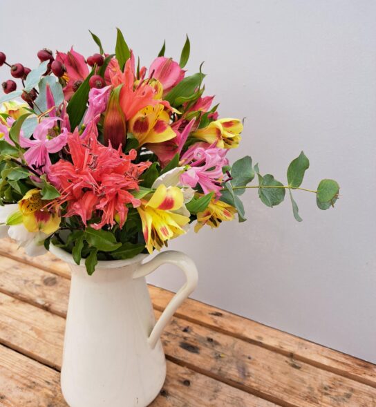 The Alstroemeria will be in mixed colours and comes from Lanoyce Nurseries near Saltash in Cornwall. Lanoyce is owned by the Rickard family and we are delighted to have fresh Alstroemeria from them every week of the year!