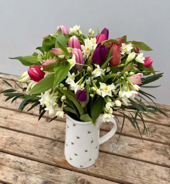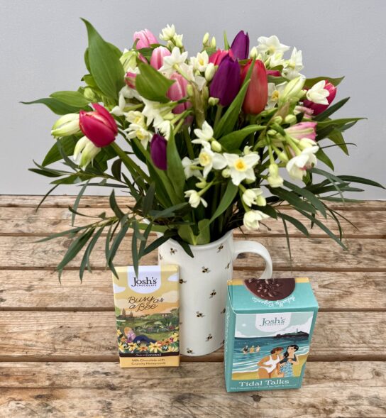 We have selected our beautiful Bouquet of the Week of Narcissi, Tulips and Alstroemeria, a box of Josh’s Chocolates Gigantic Buttons and a bar of Josh’s Chocolate to create the perfect Mothers Day gift.