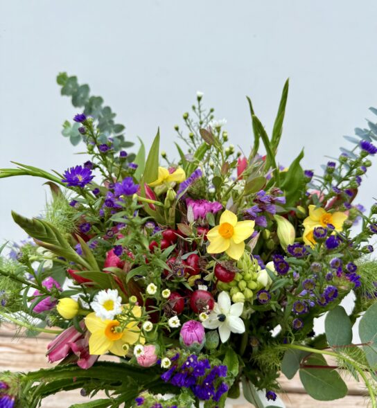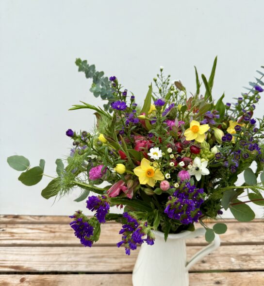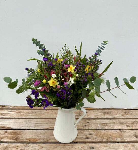The posy in October will include a selection from Scented Pinks, Scented Narcissi, Snapdragons, Alstroemeria, Scabious, Statice, Nigella, Sunflowers, Helichrysum, Zinnia, River Lilies, Michaelmas Daisies and some of our lovely farm grown foliage where available.