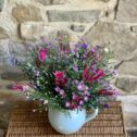 The Cornish Nerines come in shades of pink and red, with a few lovely coral tones. These striking flowers are grown for us nearby and are cut fresh for us to collect early in the day.